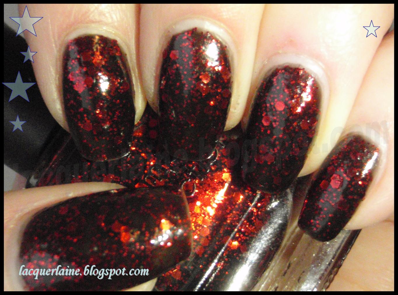 Shooting Stars - This is a dense, but fine, silver holographic glitter mixed with blue bar glitter. This swatch was 4 coats, but it looked just the same with 3 coats.